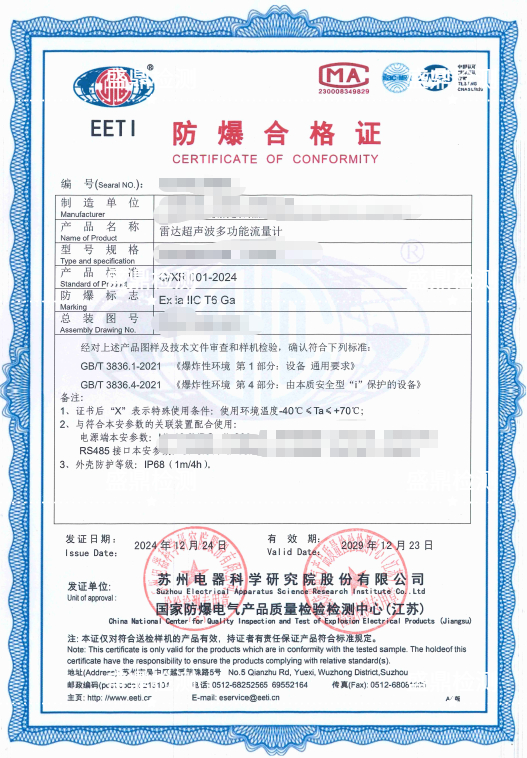 雷達超聲波多功能流量計防爆合格證