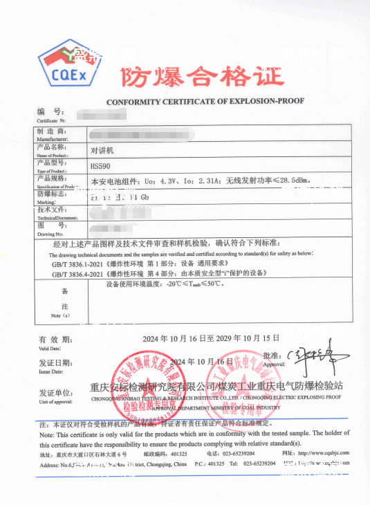 對講機防爆合格證