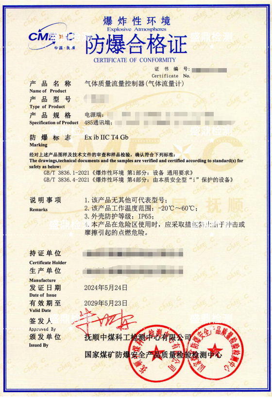 氣體質(zhì)量流量控制器防爆認(rèn)證項(xiàng)目