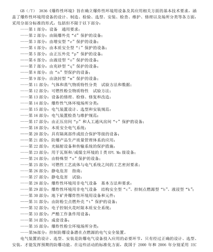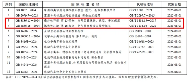 GB/T 3836.15-2017 《爆炸性環境 第 15 部分:電氣裝置的設計、選型和安裝》和GB/T 3836.16-2017 《爆炸性環境 第16 部分:電氣裝置的檢查與維護》是爆炸性環境安全檢測的執行標準之一,在今年的8月1日起,它們將被GB/T 3836.15-2024和GB/T 3836.16-2024代替。